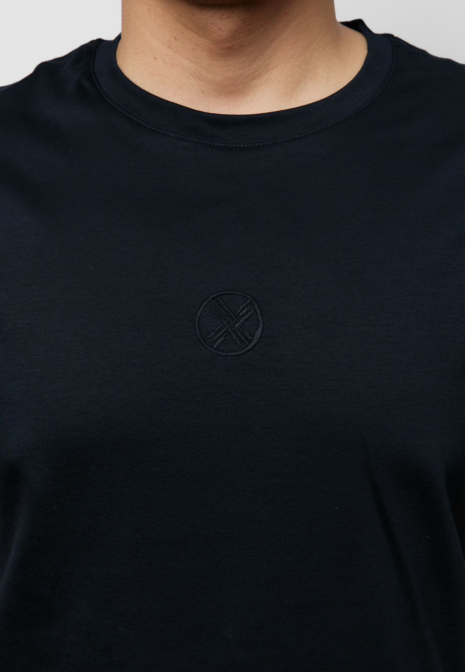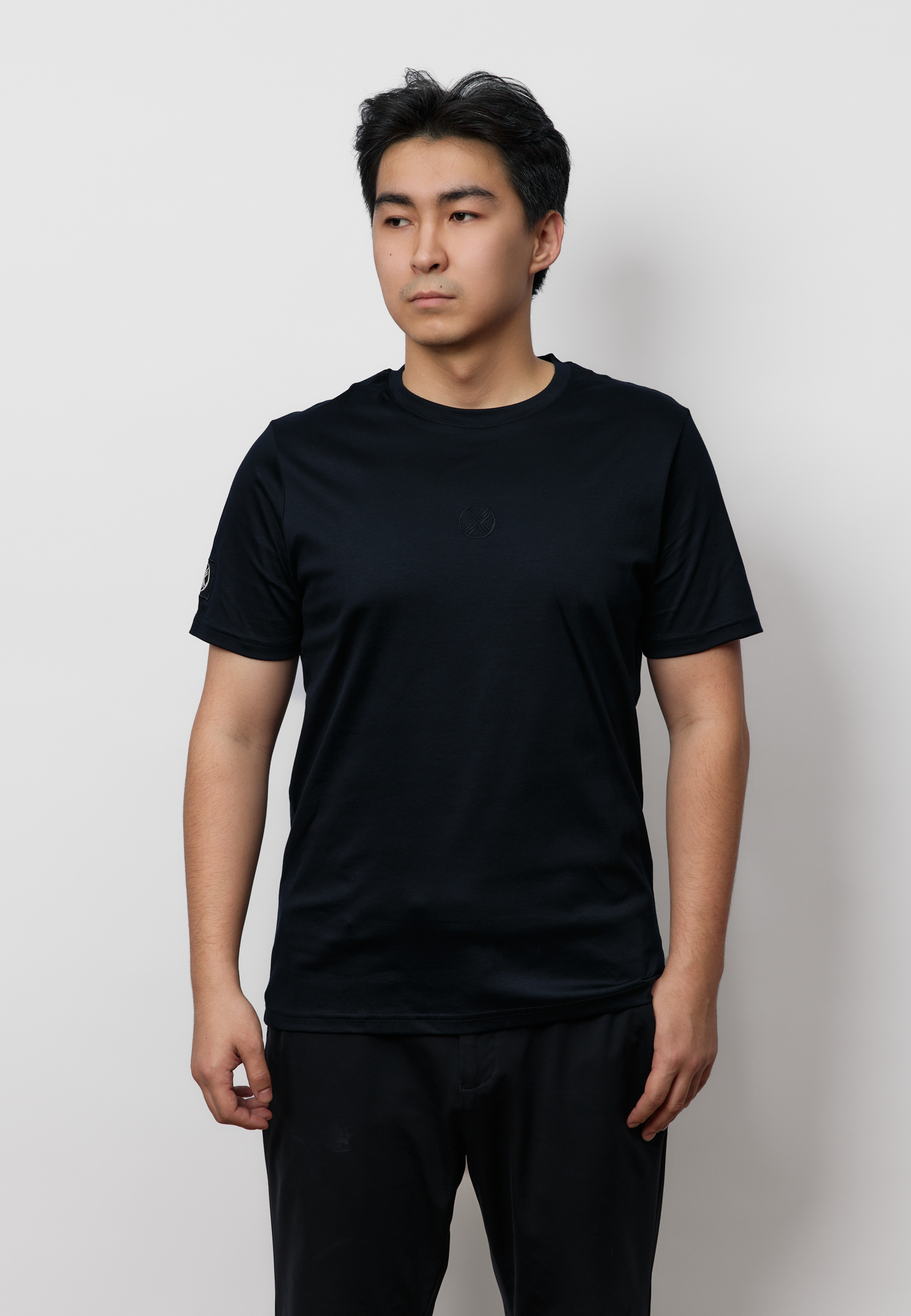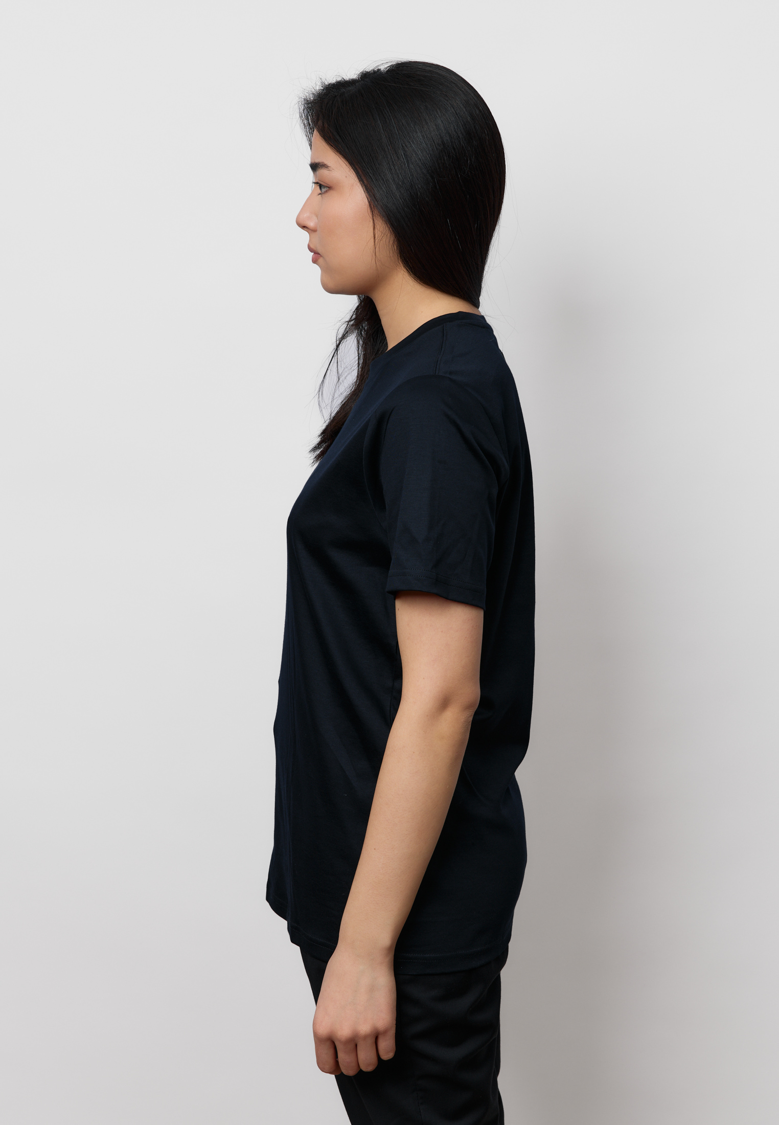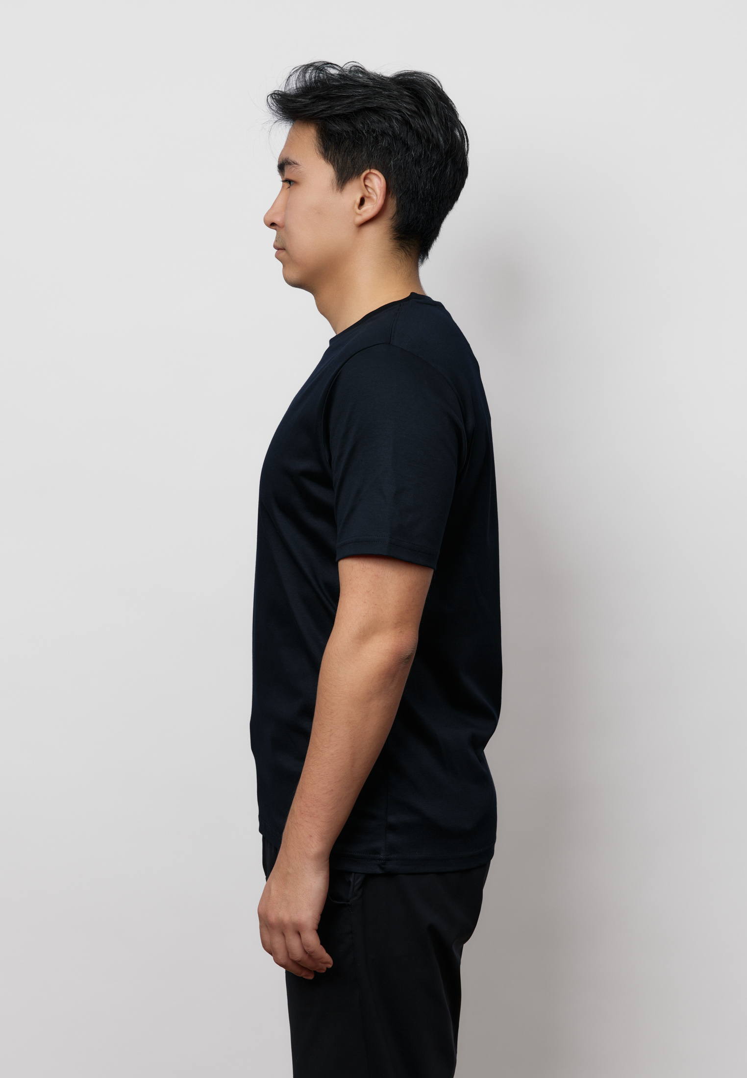 Футболка из 100% премиального мерсеризованного хлопка с идеально гладкой, плотной фактурой. Мерсеризация усиливает стойкость материала, делает цвет глубже и помогает вещи дольше сохранять аккуратный вид без катышков. Чистая базовая модель, которая выглядит собранно и уместно — от повседневных комплектов до более строгих сочетаний.