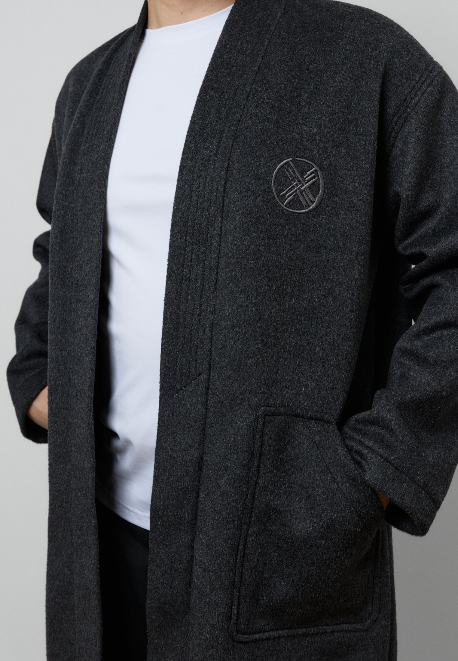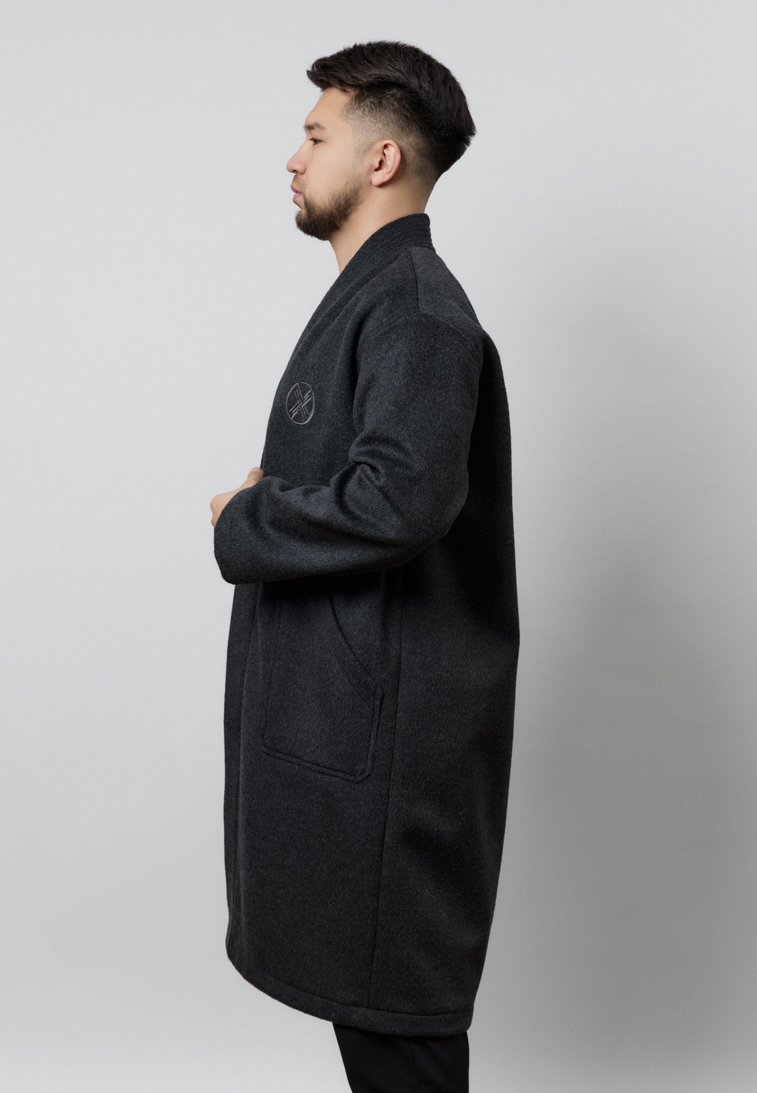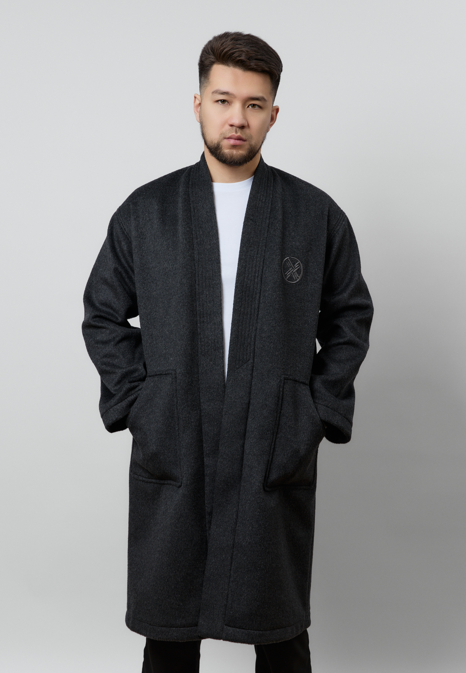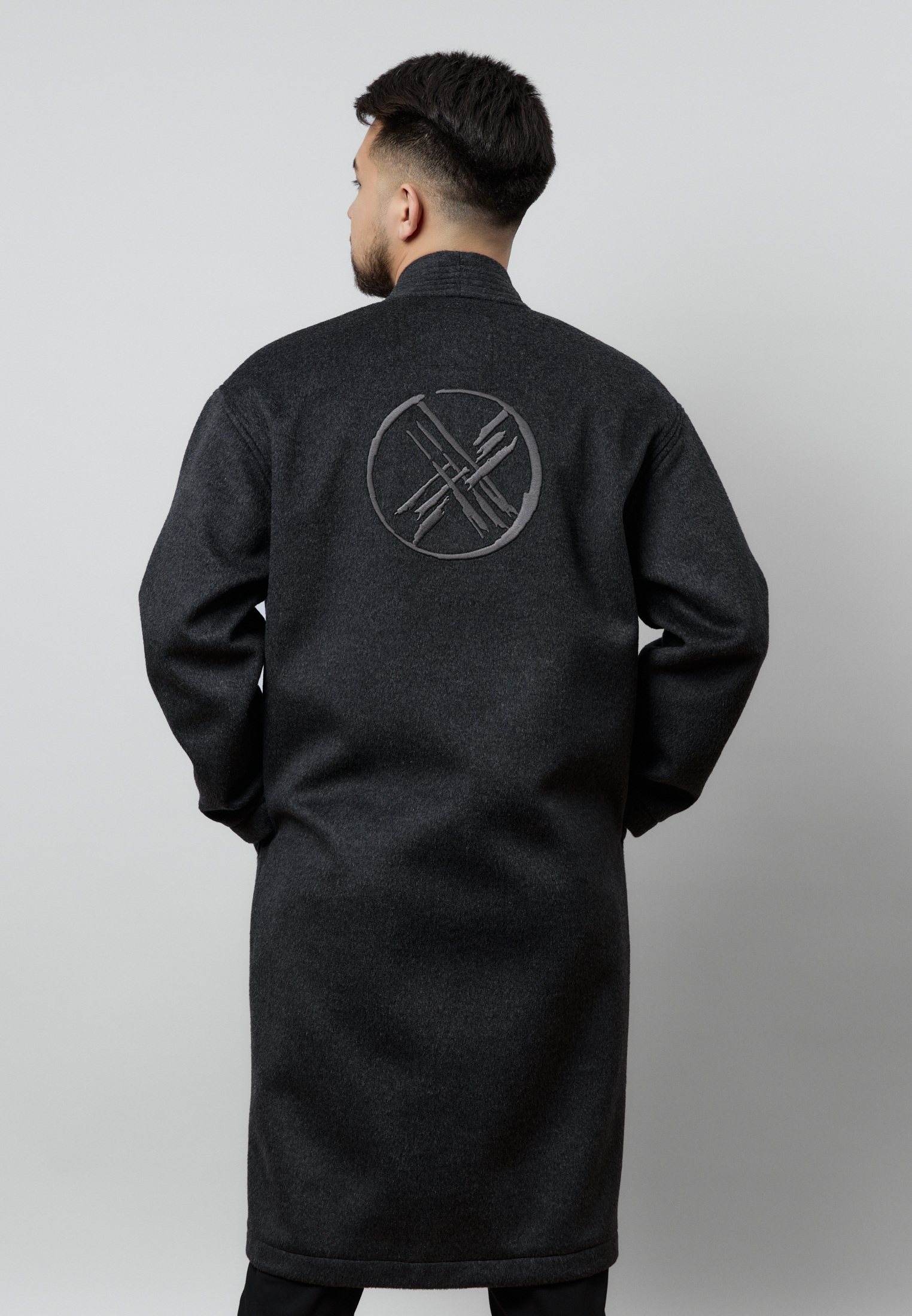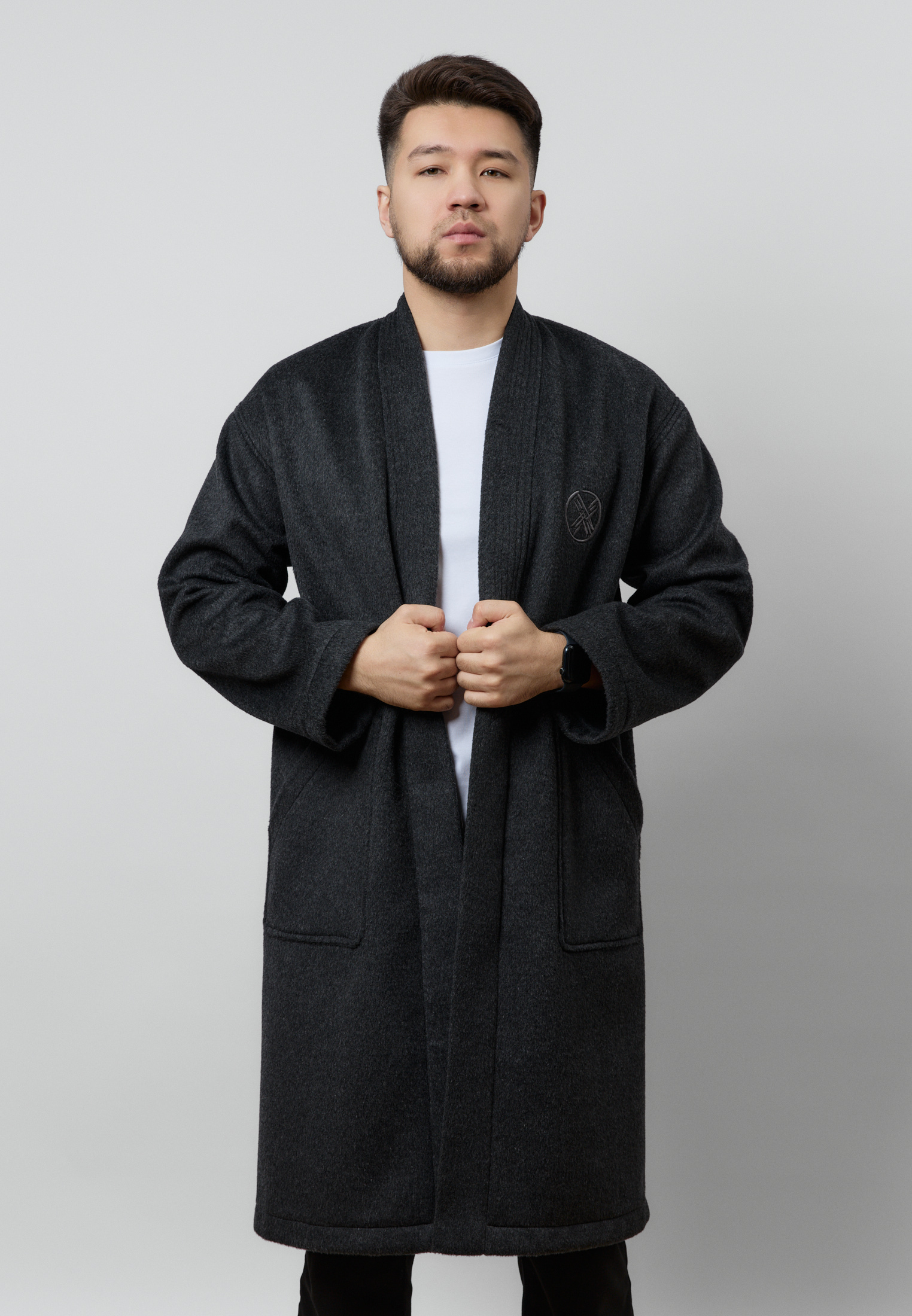 Шапан от бренда ARGYMAQ, изготовленный из 100% шерсти. Модель выполнена в прямом свободном крое, обеспечивающем комфорт и удобную посадку. Изделие украшено национальным орнаментом по борту и манжетам, а также аккуратной фирменной вышивкой на груди.